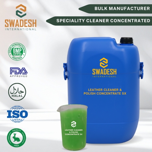 Leather Cleaner & Polish Concentrate 5X, manufactured by Swadesh International, is highly thick and concentrated solution. Dilution Ratio of LCPC 5X is 5kg Leather Cleaner & Polish Concentrate from 1Kg Concentrate after Adding DM Water.