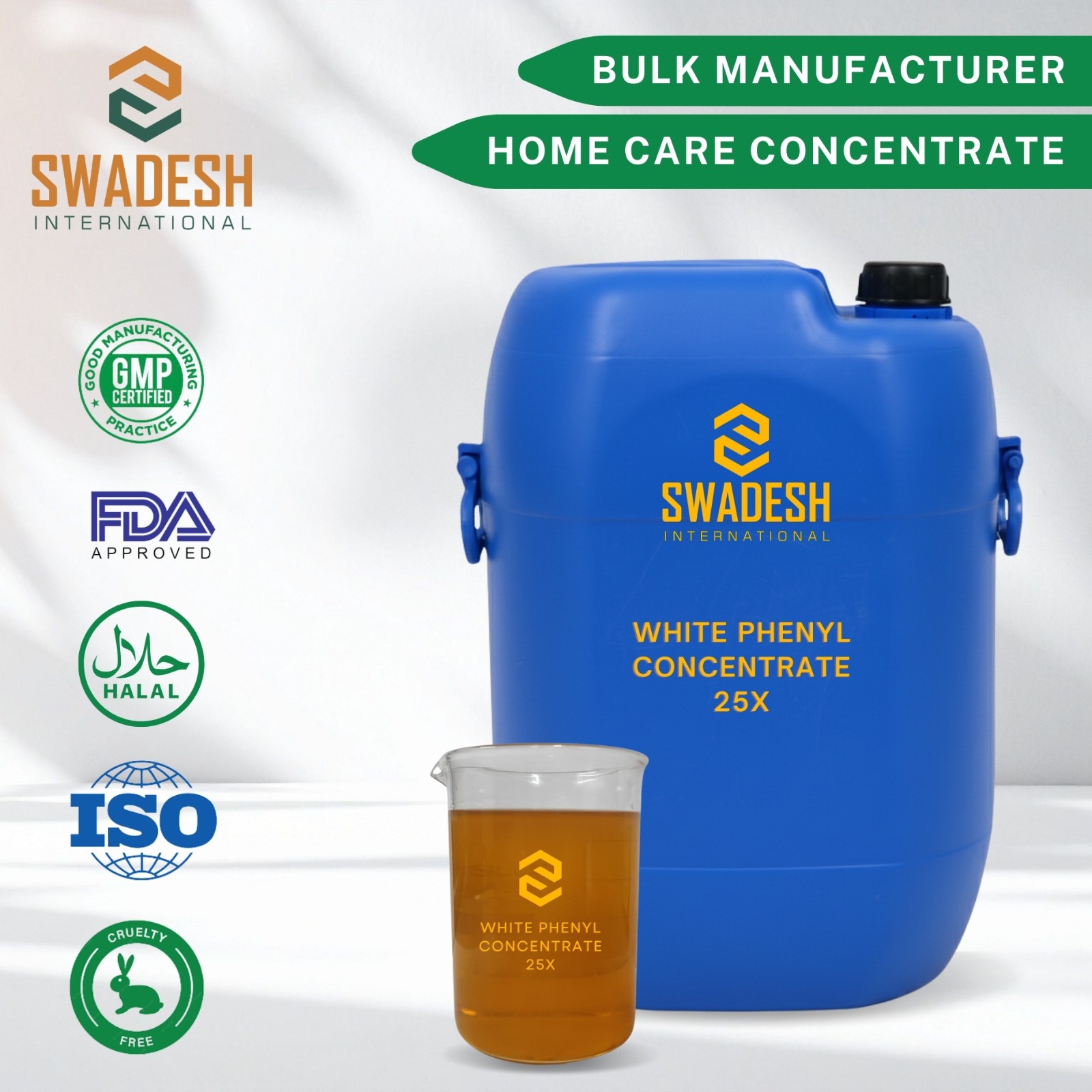 Swadesh International is a reliable Multipurpose Cleaner Concentrate Manufacturer, offering high-performance cleaning formulations for residential, commercial, and industrial applications. Our multipurpose cleaner concentrate is developed using advanced surfactants and cleaning agents that effectively remove dirt, grease, and stains from various surfaces.