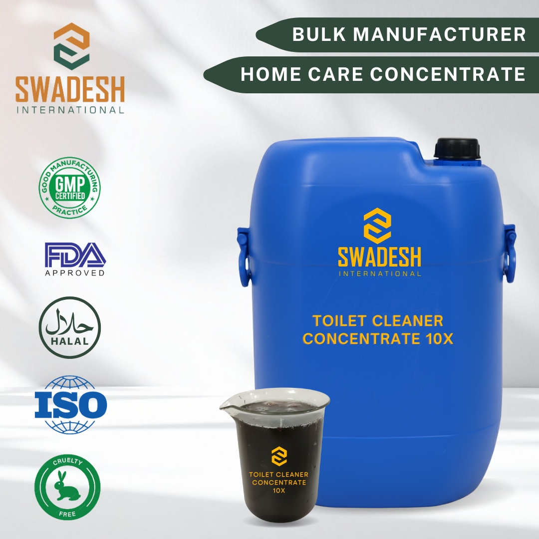 Swadesh International is a trusted manufacturer and supplier in india of Toilet Cleaner Concentrate and Toilet Cleaner Compound base, formulated for powerful cleaning, stain removal, and disinfection. Our concentrates ensure superior hygiene, long-lasting freshness, and cost-effective dilution for large-scale production, making them ideal for home care and institutional cleaning applications.